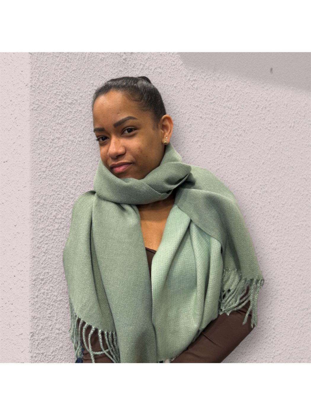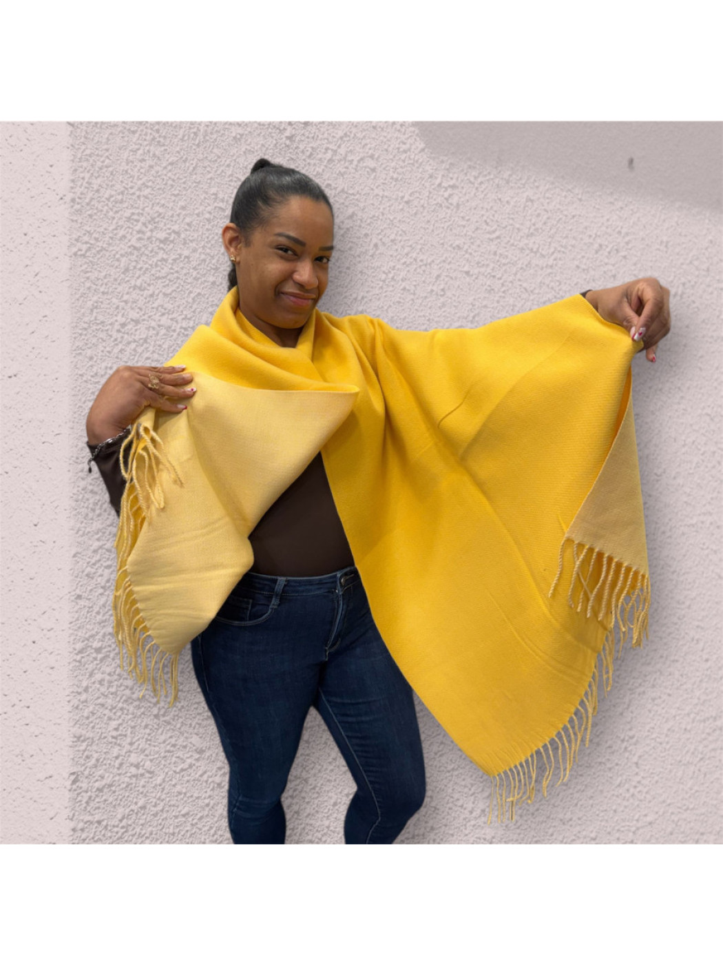 Bufanda amplia , suave y ligera, con flecos decorativos. Perfecta para añadir calidez y un toque de estilo a cualquier look.